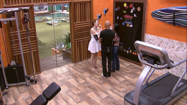 Família Lima e Gleici estão na academia. Os finalistas mexem nos avatares da academia. "Coloca um coração na Paula. E a sereia", sugere a estudante de Psicologia. os três arrastam seus bonecos para perto de Kaysar e comemoram. Ayrton conta que esta é a final que ele desejou. "A gente conseguiu não ir juntas para nenhum Paredão", comemora Ana Clara.